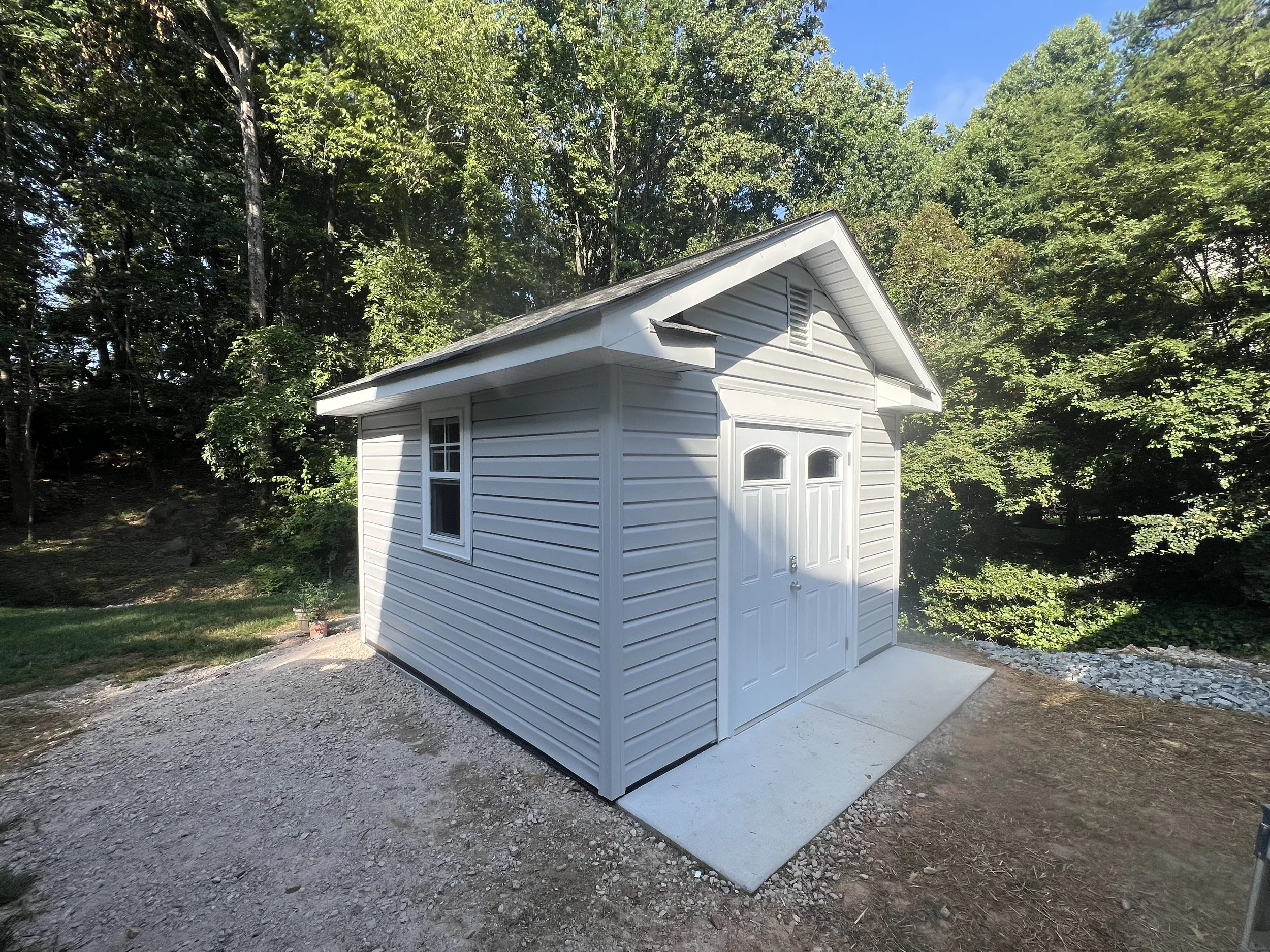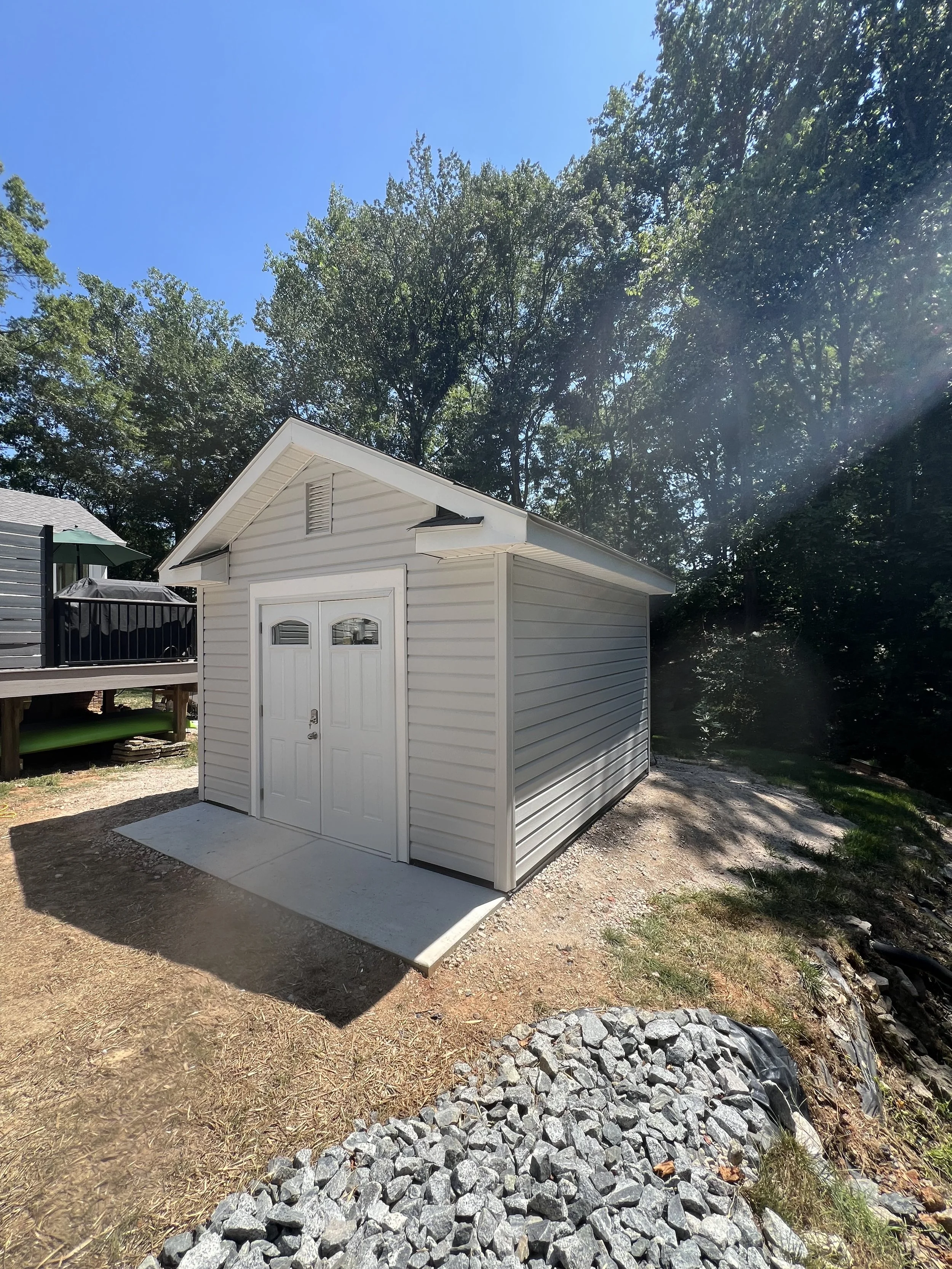 Replaced the old 90s style wooden porch railings with these up-to-date, maintenance free vinyl railing & columns.